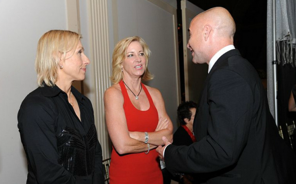 Martina Navratilova and Chris Evert chat with Andre Agassi