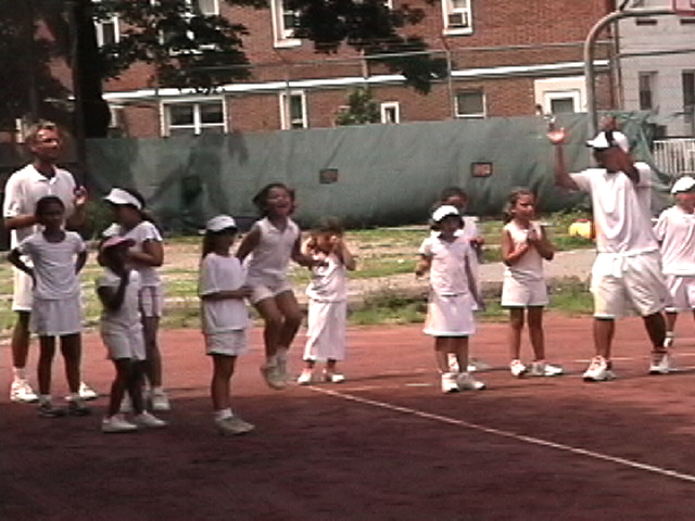The Tennis Camp is run by the Riverside Clay Tennis Association (RCTA) at the 96th Street Red Clay Tennis Courts and at the 102nd Street Playground, where 36’ and 60’ courts have been lined on existing volleyball and basketball courts.