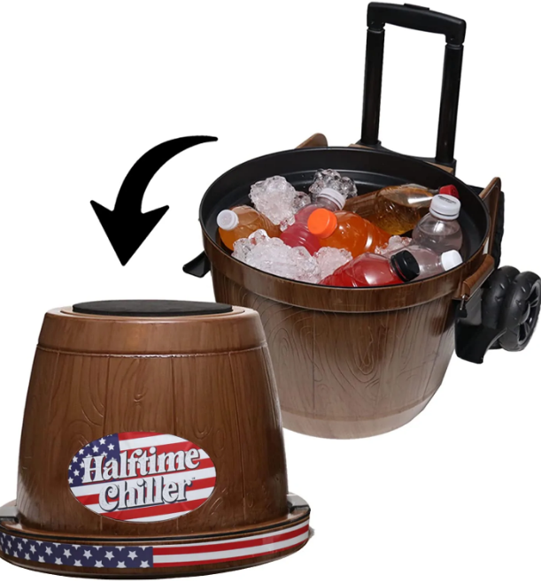The Halftime Chiller is the multi-function rolling cooler you need for all of your tailgating, picnic and outdoor activities. Halftime Chiller comes in a variety of styles, sizes and colors, and is the cooler you need for all your sport-playing needs.