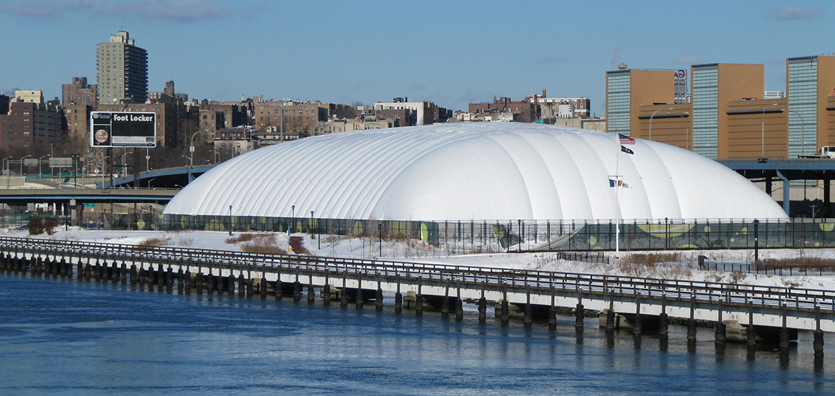 The “Gotham Stadium Bubble” continues to reign as one of the largest tennis bubbles or tennis domes of this type in the world, covering an area of more than four million cubic feet and a footprint of more than 75,000-square feet. The “Bubble” features high 65 ft indoor ceilings and spacious backcourts. These offerings please the playing public and aspiring junior players from throughout the metropolitan NYC region including beginners and advanced beginners, intermediate and advanced tournament level, interscholastic and collegiate players who train and compete at and call Stadium Tennis Center their “home court.”