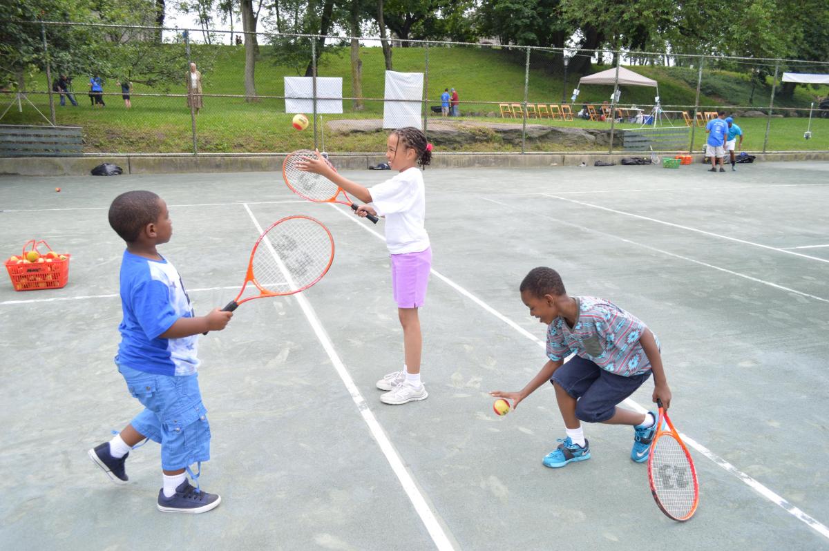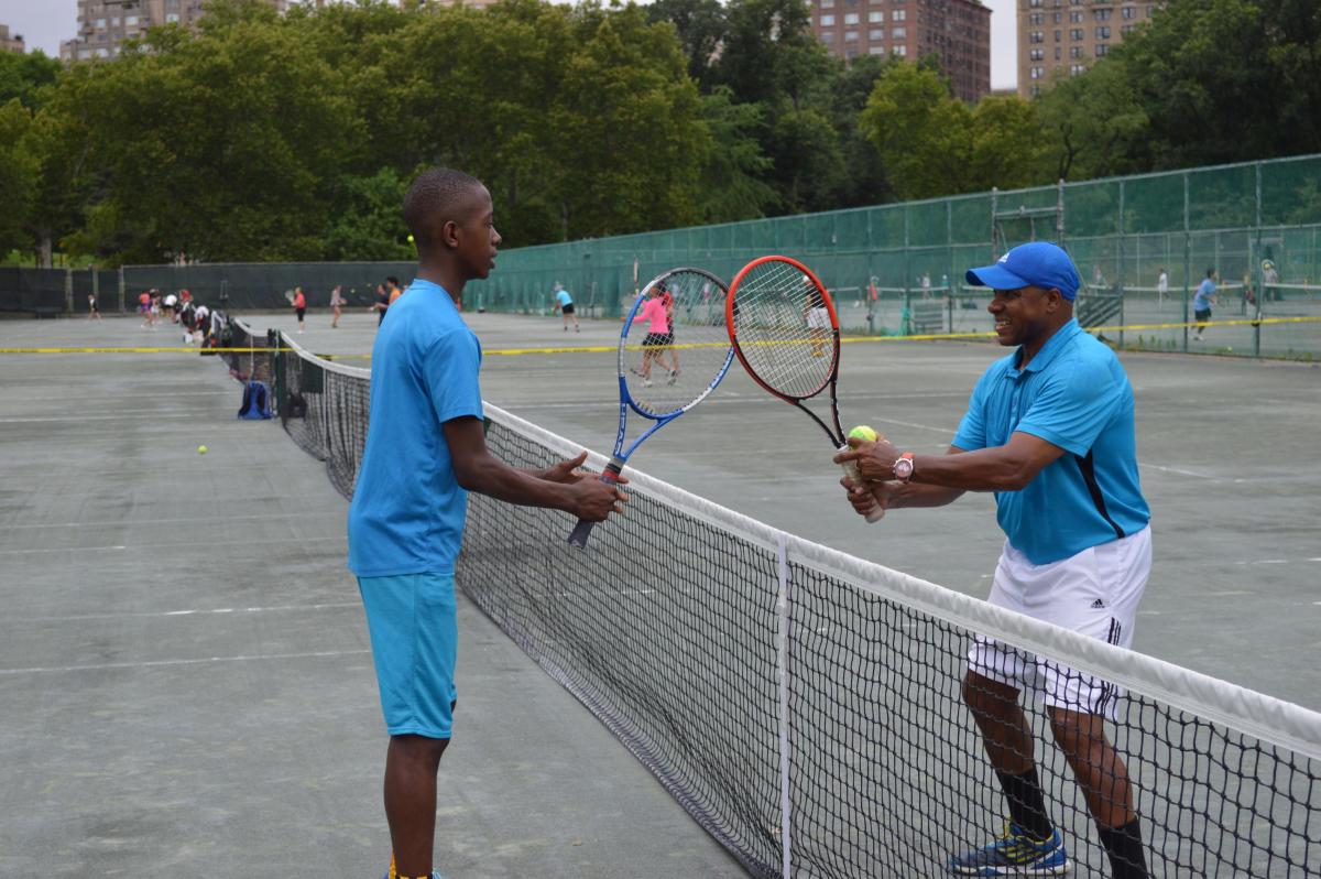 On Saturday, July 4, children and adults were given free tennis lessons to celebrate the New York Open’s “David Dinkins Family Day” named in honor of the former New York City Mayor who has been a big supporter of both Tennis in New York, Inc. and the New York Open. Donald Tiller, an adult participant in the free tennis lessons, said “I had never picked up a racquet before but I had a lot of fun. I am still sore from using muscles I had never used before.”