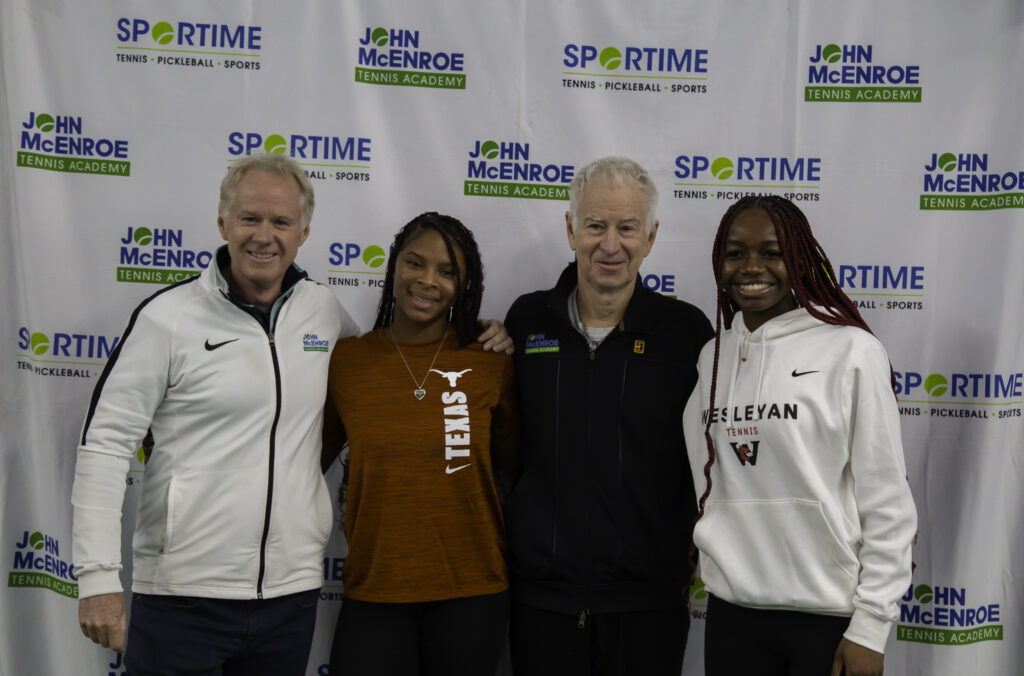 From left to right: Patrick McEnroe, Christasha McNeil, John McEnroe and Lara Afolayanka at the JMTA College Signing Day in February.