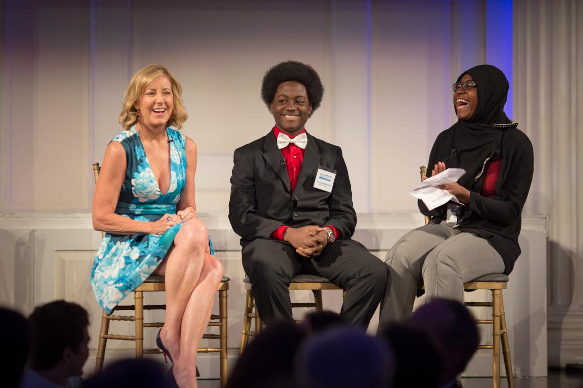 Honoree Chris Evert was interviewed onstage by Breakthrough New York students Trevon Robrt-Walker and Fatoumata Soumare
