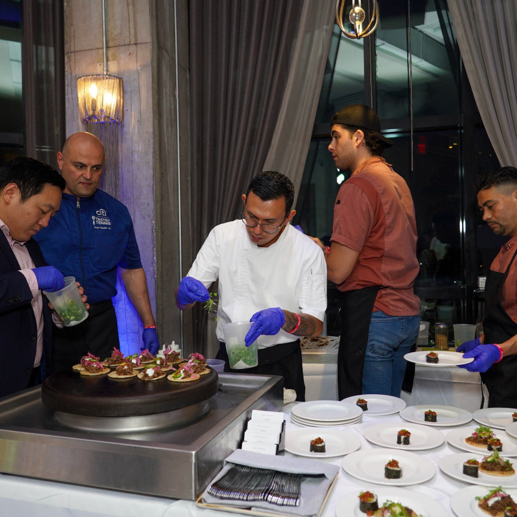Servin’ It Up Citi-Style: Pro tennis players including Gael Monfils, Elena Svitolina, Belina Bencic, Marcelo Arevalo, Lloyd Glasspool, JJ Wolf, Robin Haase, Maximo Gonzalez, Alexis Galarneau, Ugo Humbert, Petra Martic and more (full list below) sampled incredible cuisine including jackfruit tacos & braised beef slides courtesy of Chef Mac & Chef Pinke of Flavorture, Shawarma Grill Lamb Chops courtesy of Chef Juan of La Vie, Short Rib Paratha Taco courtesy of Chef Bader Ali of Gerrard Street Kitchen, and so much more.
