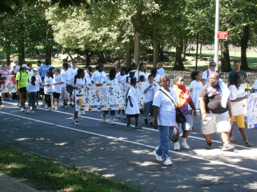 The week-long tournament kicked off with the New York City Police Department vs. the New York City Fire Department Tennis Championships. It was the kids turn to take part in the festivities on Thursday of the event. Starting at 11:00 a.m., many participants of the NYJTL took part in a Disney Kids Around the World Day Parade. All the different NYJTL chapters took part in the parade, brandishing elaborate banners depicting what makes tennis so special to them. While walking with their peers, each different group was chanting songs and dancing in the parade. At the end of the parade route, the kids were brought onto the main court where there was some high quality entertainment. Children were treated to a special musical dance performance by Helen Butleroff, a former Rockette and certified Dietician/Nutritionist, with a supporting cast of Broadway singers and dancers teaching the children the benefits of healthy eating. The songs they sang were about eating healthy, living healthy, being active and having fun with life! The words to the songs were over upbeat music which got the kids up and dancing and made them more attentive to what the performers were saying.