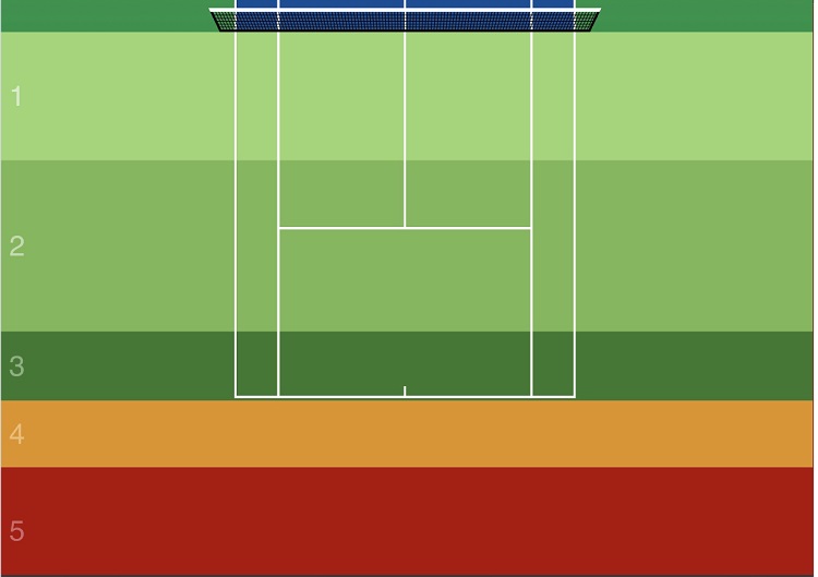 So let’s talk about some key concepts you might want to seriously consider if you want to go from being a hitter to becoming a great player. GOTTA tennis breaks down the tennis court into five distinct zones: