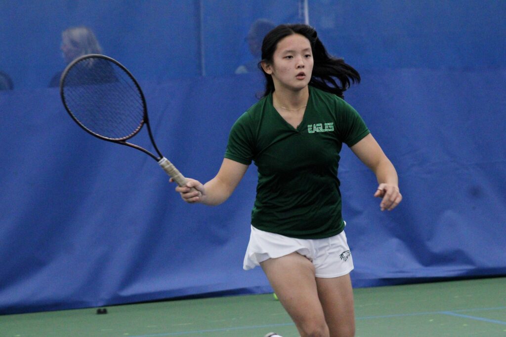 Led by Grace Mahabir and Lian Wachspress at first and second singles, respectively, the Eagles took two of the three singles flights. Mahabir won 10-8 in the first spot, while Wachspress won a crucial 11-10 match at second singles.