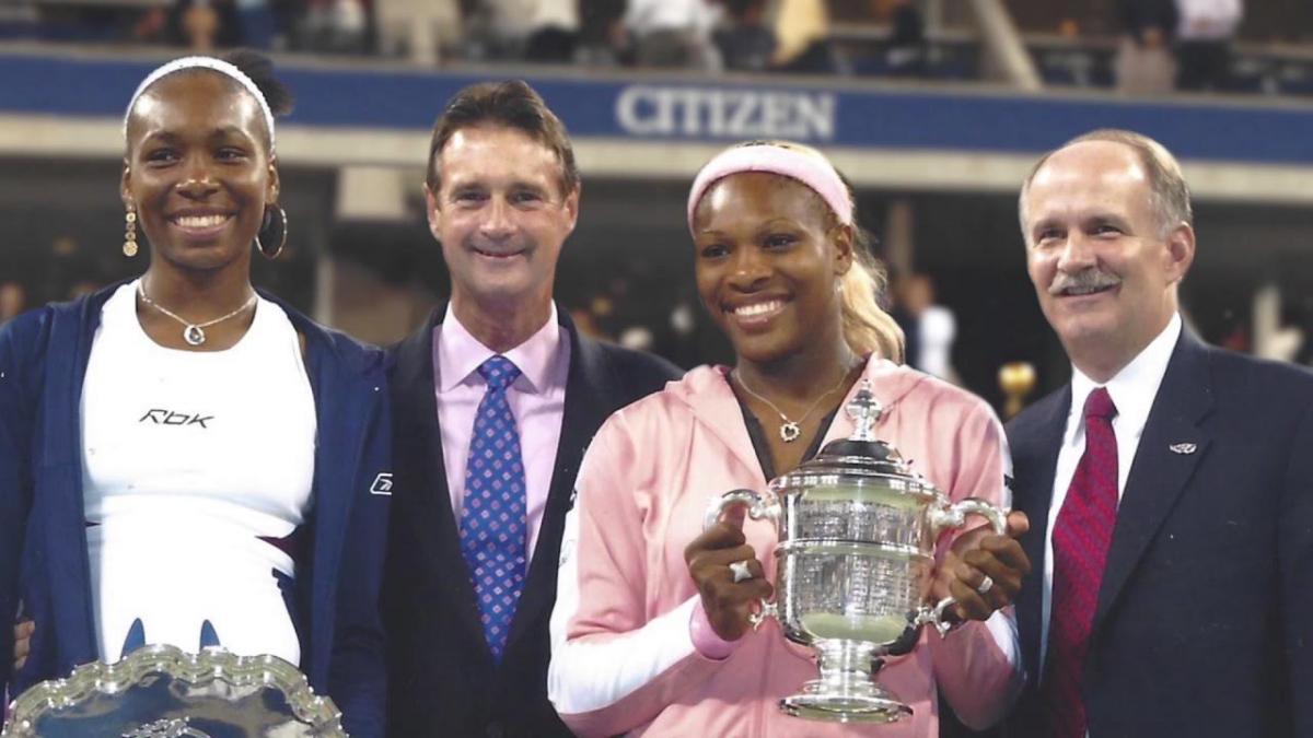 Rick Ferman (far right) with Venus & Serena Williams at the U.S. Open