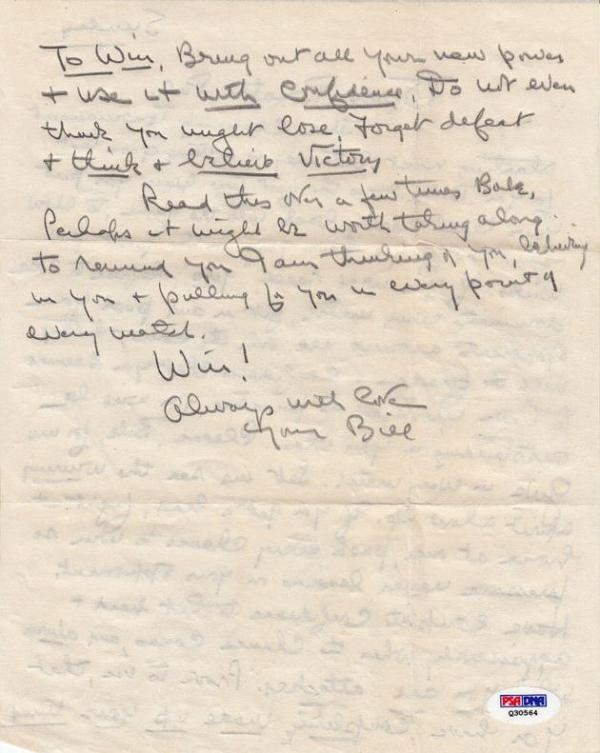Please, Babe, for me give in every match. Let me see the winning spirit show up. If you get a lead, fight it home at once, push every chance to win so pressure never lessens on your opponent. Have complete confidence to hit hard and aggressively when the chance comes, and always when you are attacked. Prove to me, that you have completely made up your mind to win. Bring out all your new power and use it with confidence. Do not even think you might lose. Forget defeat and think and believe victory.
