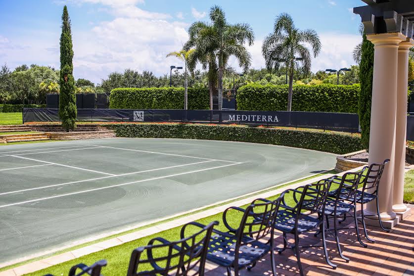 Mediterra’s on-site amenities include themed neighborhood parks; eight miles of walking and jogging trails; a fitness complex with bocce courts, a pool, spa; and a world-class tennis program.