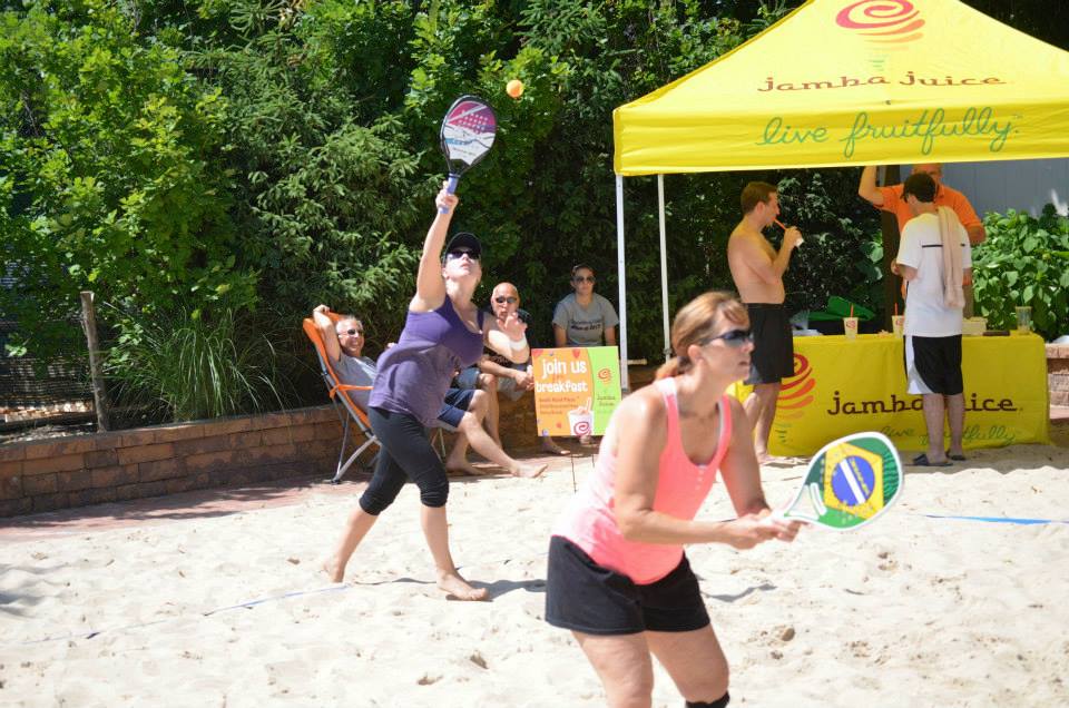 Even when players weren't in the midst of matches, the fun didn't stop. NY Beach Tennis brought in a multitude of sponsors and entertainment so that players and attendees could enjoy refreshing smoothies from Jamba Juice, play beach games provided by LI Tennis Magazine, be interviewed on NY Tennis Magazine's Tennis Talk NY Radio Show, play the John McEnroe Tennis Academy-branded Corn Hole game, and listen to music by DJ Curtis McCalla. Players also received a litany of prizes from the tournament organizers and sponsors alike, as each left with a swag bag full of gifts which included gifts from Sportime, Holabird, Boast, ZEMgear and many others.