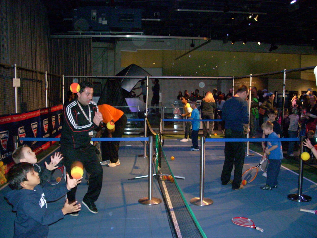 USTA brought along Patrick McEnroe, general manager of USTA Player Development, to assist with the activities. McEnroe took to the QST court to challenge the young tennis players and offer them pointers on their game.