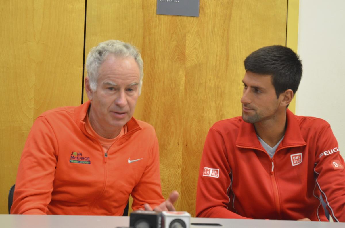 John McEnroe and Novak Djokovic field questions during the pre-match press conference