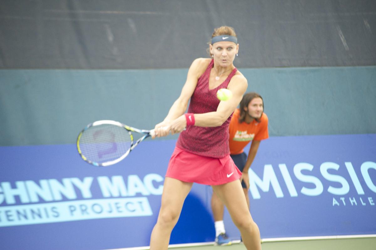 University of North Carolina and JMTA’s own Jamie Loeb takes on Lucie Safarova during an exhibition at Sportime Randall's Island