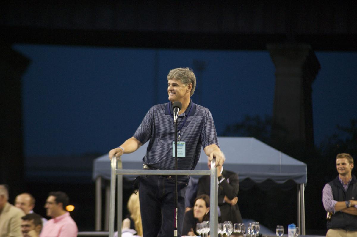 Guest umpire Sean Hannity enjoying an evening of tennis for a good cause