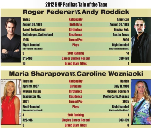 This year, the newly-renovated MSG will welcome back the top stars of both the WTA and ATP Tours on Monday, March 5 as former world number one-ranked Caroline Wozniacki of Denmark will face the number two-ranked Russian and three time Grand Slam winner Maria Sharapova at the 2012 BNP Paribas Showdown. Representing the ATP Tour, the number three-ranked Federer will face world’s 17th-ranked and former U.S. Open champion Andy Roddick of the United States.