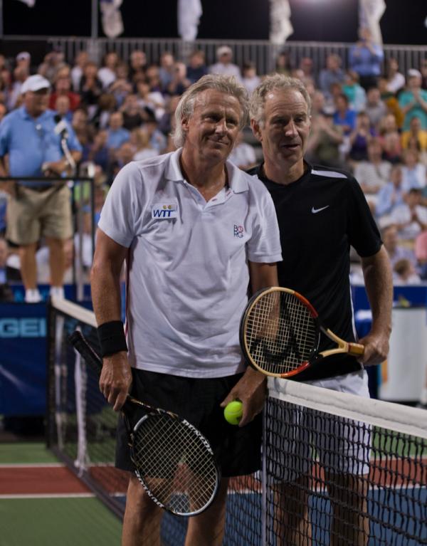 John McEnroe and Bjorn Borg renewed their epic rivalry as they played in front of a sold-out crowd at Sportime at Randall’s Island