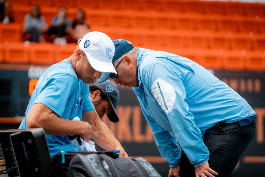 Ohio State prevailed in a tight doubles battle to take the lead to start the match. The duo of Cannon Kingsley and Jack Anthrop struck first in doubles play with a 6-4 win over Alex Kotzen and Henry Ruger in the No. 3 position. The Lions answered back as Nicolas Kotzen and Max Westphal posted a 6-4 upset win over No. 49 Andrew Lutschaunig and Justin Boulais in the No. 2 spot.
