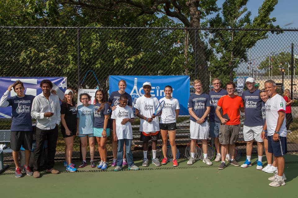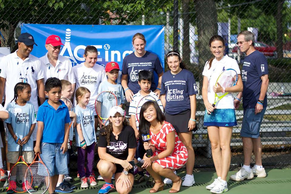 USTA Metro Board President Jackie Clark and Metro Board member Daniel Arzuaga volunteering at the ACEing Autism free kids clinic prior to the start of the U.S. Open