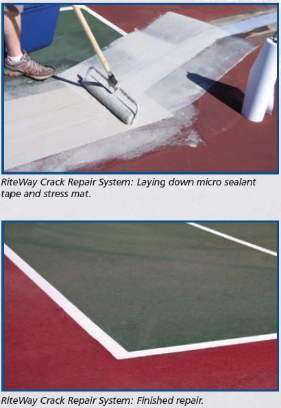 RiteWay is a layered system that becomes an integral part of the tennis court and results in an invisible repair which is not affected by weather or temperature. It not only keeps cracks from coming back, but it eliminates dead spots, hollow sounds and bubbling common with other systems.